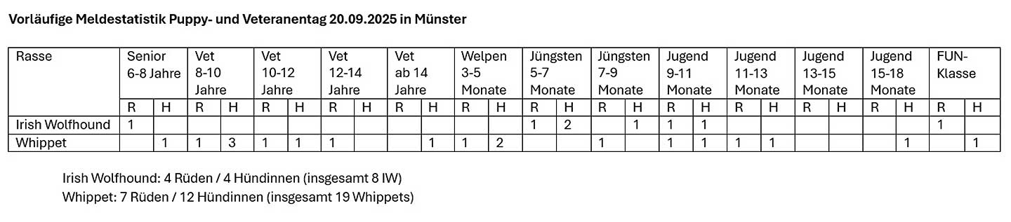 Am Montag, den 09. Juni 2025, findet eine Körveranstaltung des Whippet Club Deutschlands 1990 e.V. statt. Zwei anerkannte Richter werden die Beurteilung übernehmen.